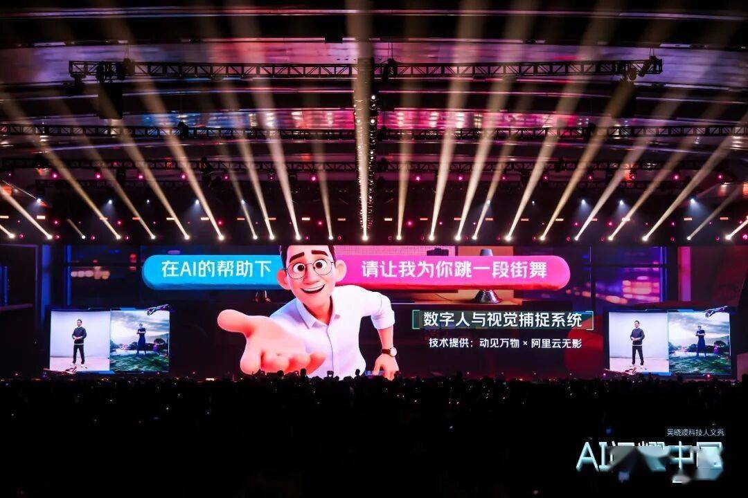 这是一项本年方才成熟的手艺,就是我正在这里跳舞,同时旁边有一个数字人,我所有的动做是以不延时的体例被这个数字人捕获并仿照出来。完成这个手艺的团队叫做动见,我正在云栖大会上看到了这个手艺,今天把它搬到了这个舞台上。你们看到这个手艺想到了什么?它有可能为良多行业、良多文化财产、良多车间使用动做捕获手艺带来很大的变化,正在将来,很可能有一个你出格喜好的明星,他本人正在三亚晒太阳,可是别的有一个替身正在替他唱歌、跳舞、谈爱情。