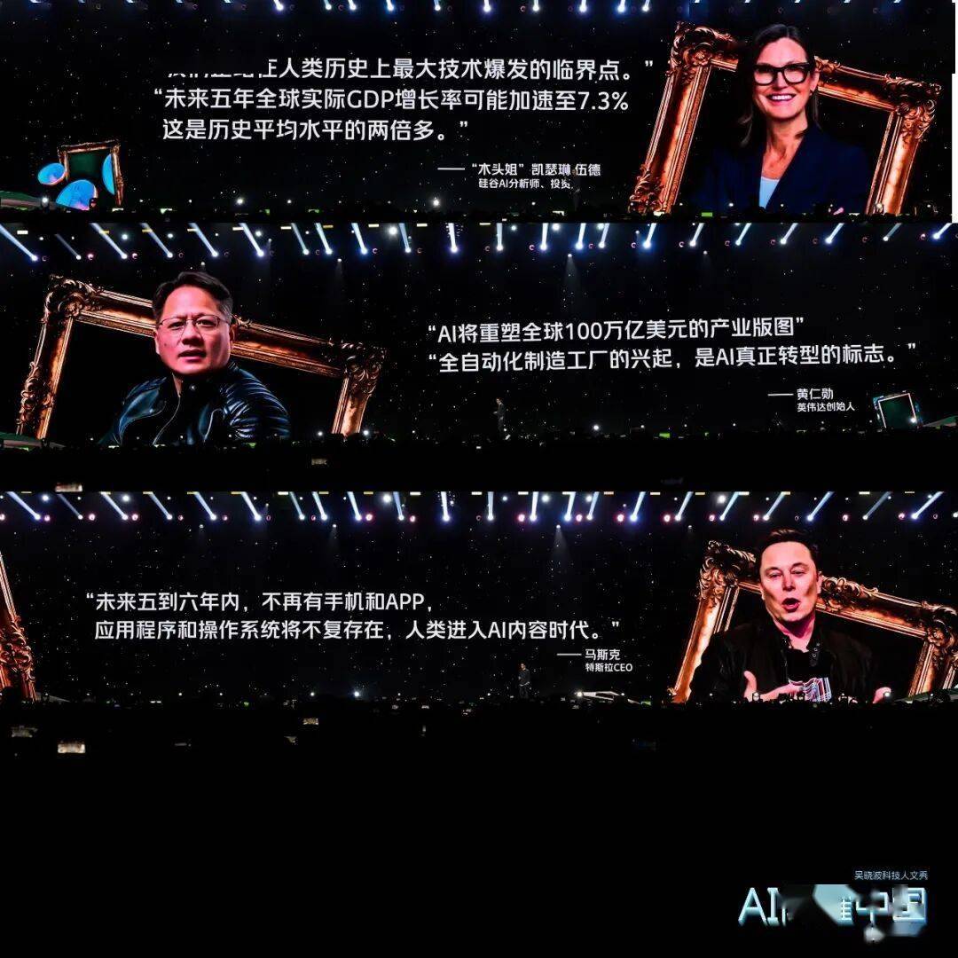 接下来,我将分十个章节,和大师演讲一下2025年中国正正在发生的AI实践,这些都是我实地调研所见取所得。第一位是个女生,凯瑟琳·伍德,正在网上被中国人叫做“木头姐”,硅谷很是出名的AI阐发师和投资人,她说:“我们正坐正在人类汗青上最大手艺迸发的临界点”“将来五年全球现实P增加率可能加快至7。3%,这是汗青平均程度的两倍多”。(AI视频画面,她用东北话讲述)英伟达的创始人黄仁勋说:“AI将沉塑全球100万亿美元的财产邦畿”“全从动化制制工场的兴起,是AI实正转型的标记”。(AI视频画面,他用腔讲述)特斯拉的CEO马斯克说:“将来五到六年内,不再有手机和APP,使用法式和操做系统将不复存正在,人类进入AI内容时代”。(AI视频画面,陕西话讲述)
