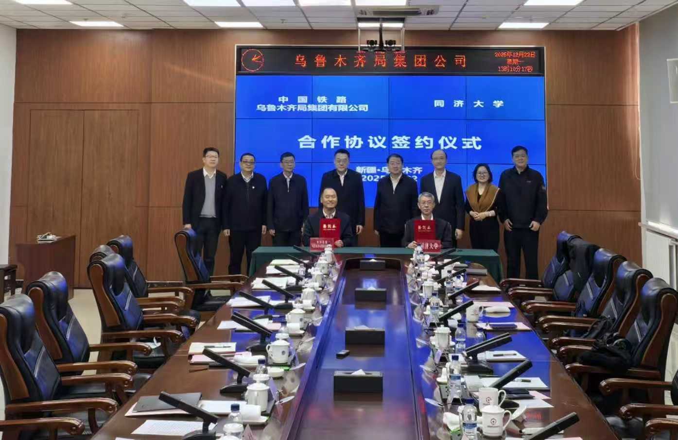 12月22日,同济大学取乌鲁木齐铁局签定合做和谈。乌鲁木齐铁局党委、董事长郭吉安,同济大学副校长石振明,同济大学高铁及坐城融合研究院院长郑健出席勾当并讲话。